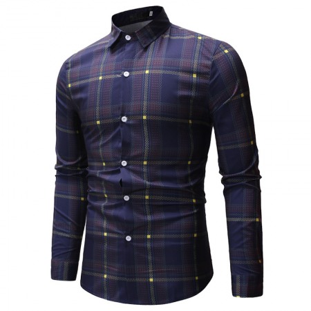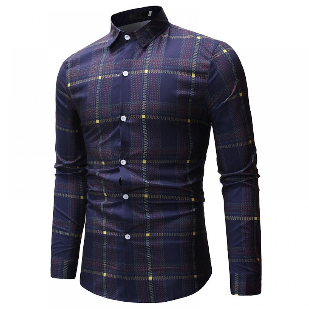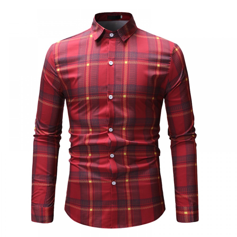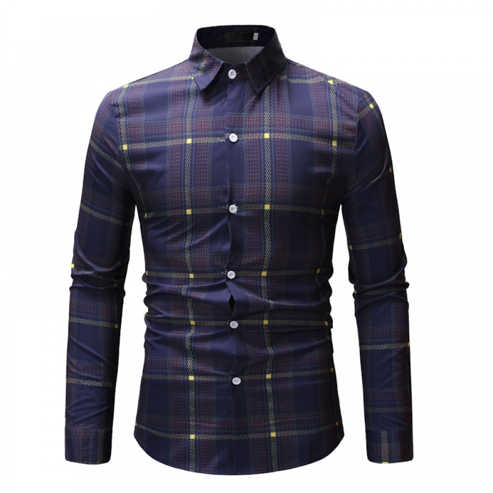 Fashion Autumn New Long-Sleeved Plaid Shirt Male Style Loose Shirt Jacket Ins Casual T-Shirt