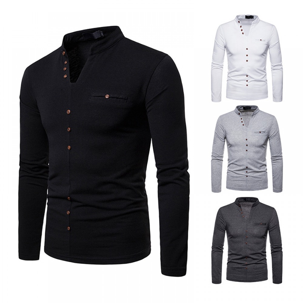 Men's Plus Size Plus Velvet Warm V-Neck Long-Sleeved T-Shirt Base Shirt
