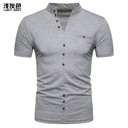 New Fashion Men's Henry Collar Design Short Sleeve T-Shirt