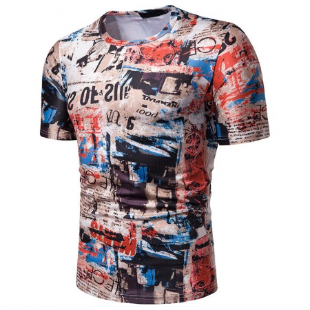 New Summer Men's Graffiti Print Short-Sleeved T-Shirt