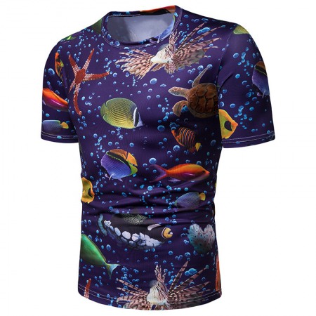 New Summer Men's Underwater World Print Short-Sleeved T-Shirt
