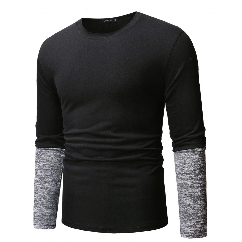 Round Neck Short Sleeve Summer Men's Casual Round Neck Color Matching Long Sleeve T-Shirt