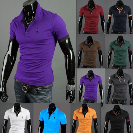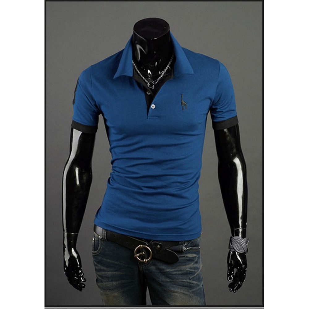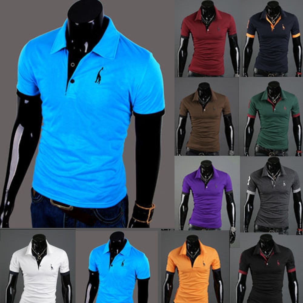 New Summer Men's Placket Knock Button Hit Color Short-Sleeved Bottoming T-Shirt Casual Lapel Bottoming Shirt
